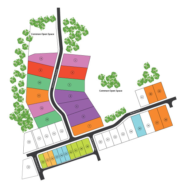 There are 8 home builders. Choose your favorite builder and their color coded available lots.